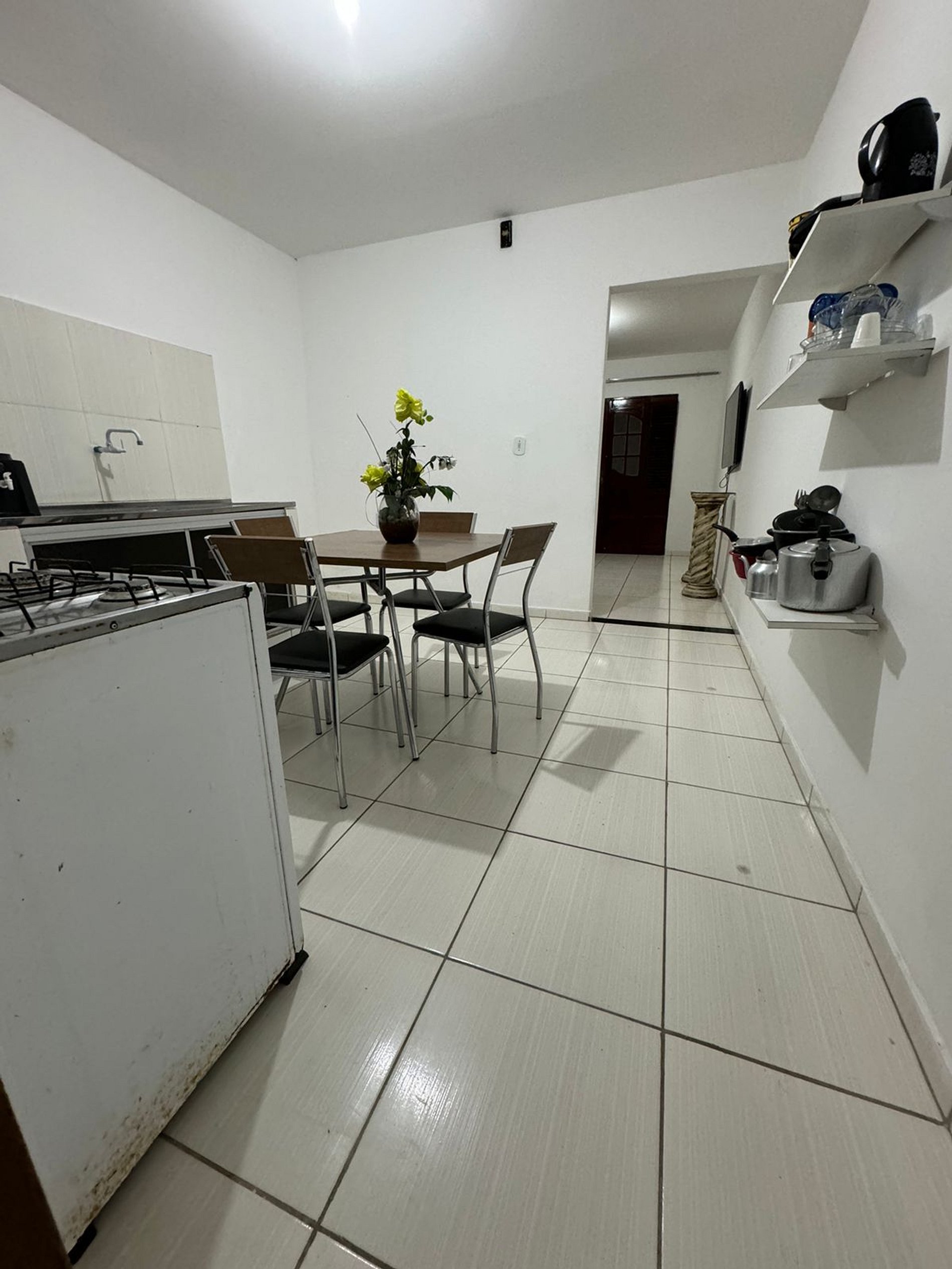 Apartamento com 2 quartos, sala, cozinha e banheiro. Nos quartos já tem lençóis, toalhas e travesseiros, sala e a cozinha independentes, na cozinha temos uma geladeira, um fogão, uma mesa com cadeiras e uma pia. Na área da sala temos uma TV e um sofá com dois assentos, no banheiro já possui sabonetes e papel higiênico para uso pessoal dos hospedes.