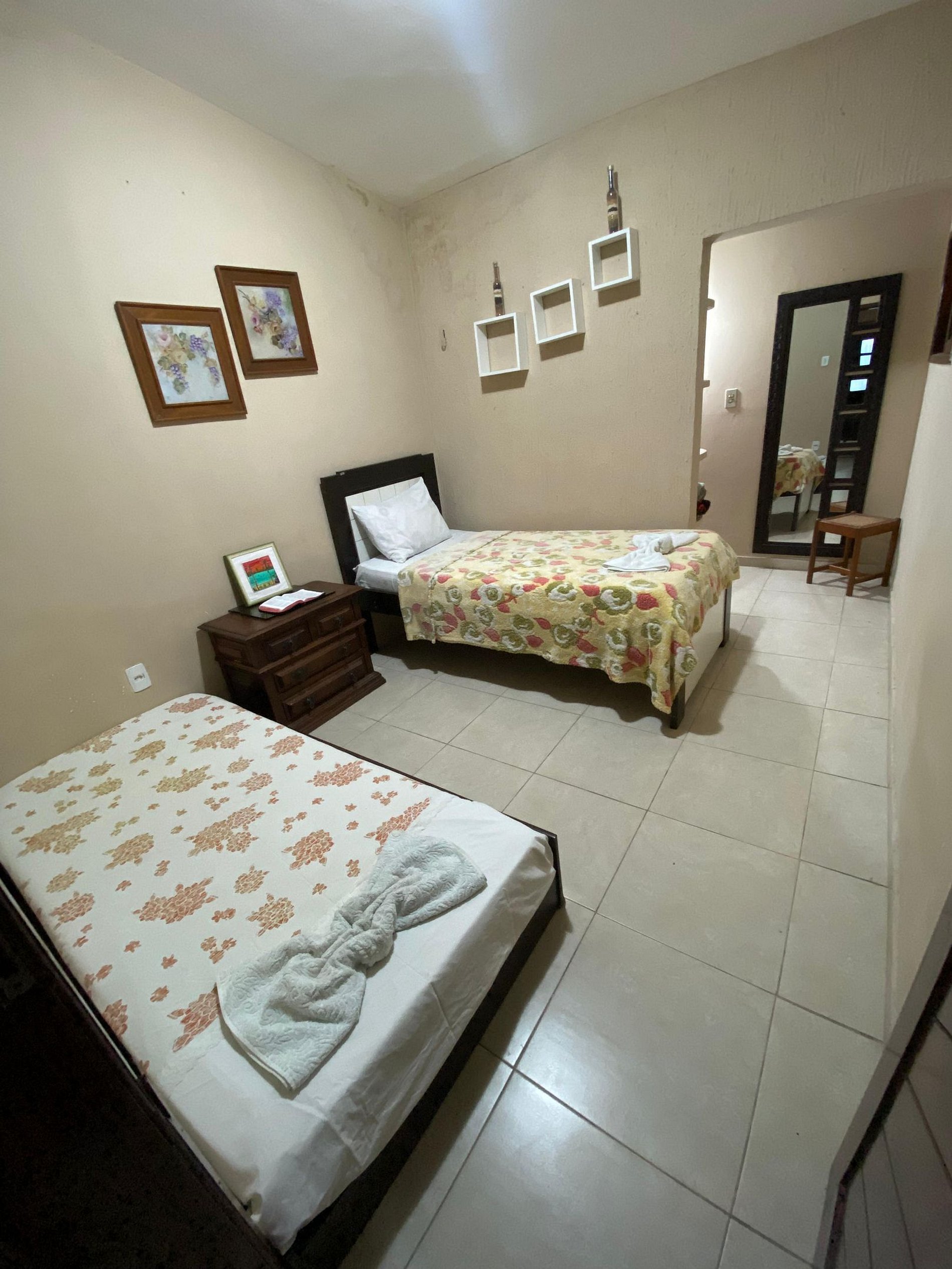No primeiro andar, você encontrará dois quartos adicionais que oferecem um refúgio tranquilo e privativo. O primeiro quarto conta com uma cama de solteiro, guarda-roupa e um espelho, enquanto o segundo quarto é equipado com uma TV e um armário. Ambos os quartos têm acesso a um terraço encantador, ideal para desfrutar de uma tarde relaxante ao ar livre.