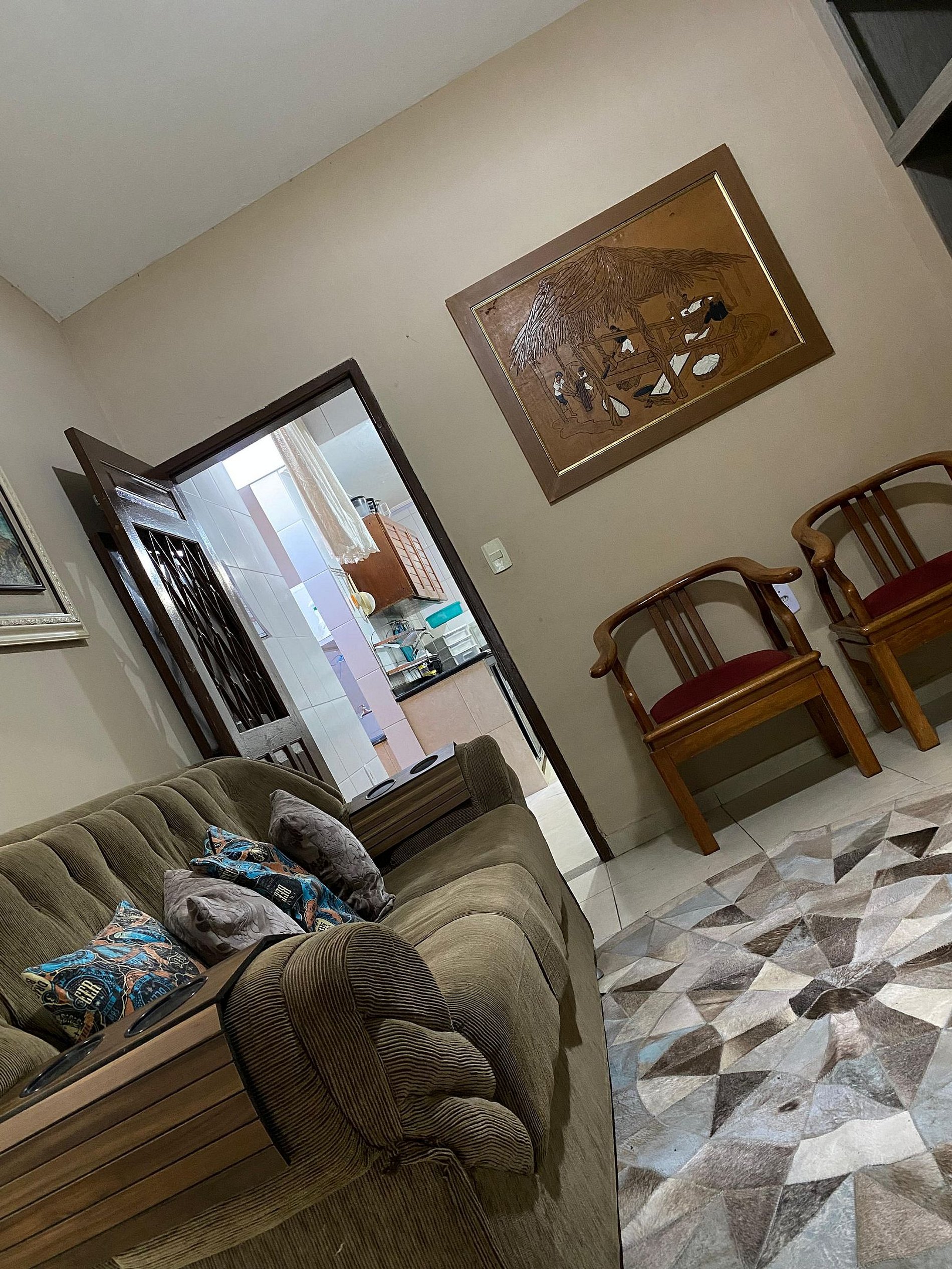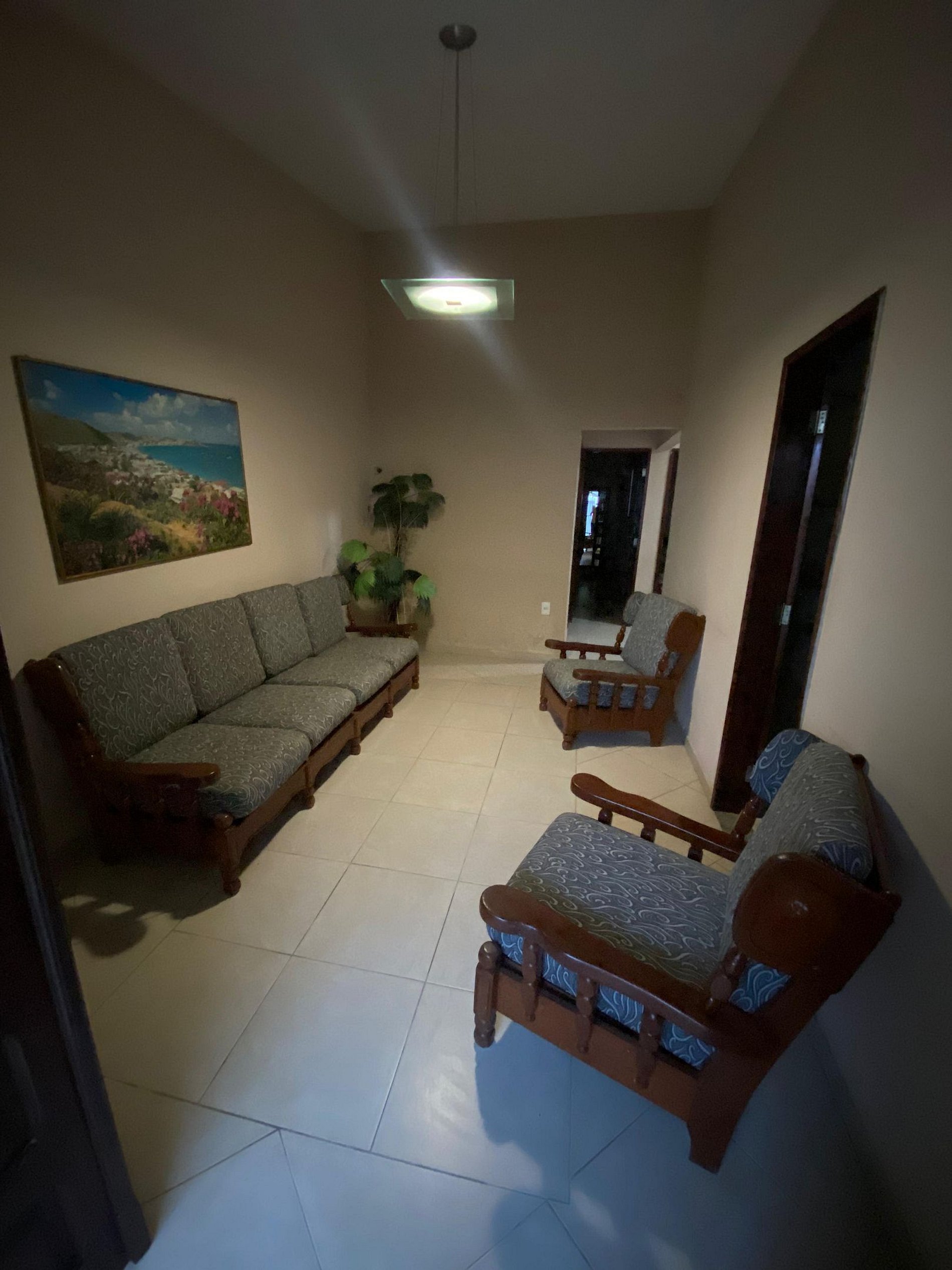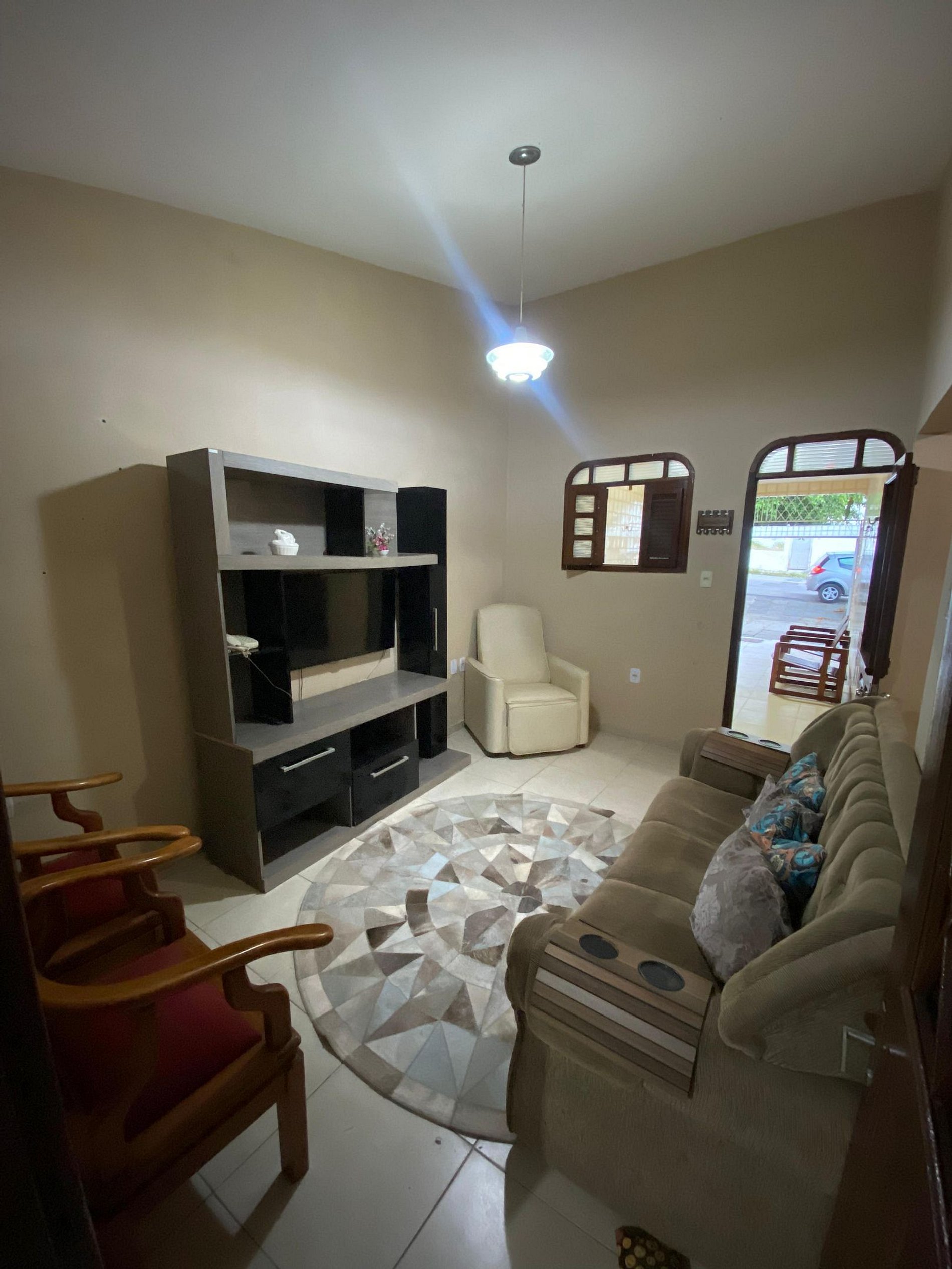 A casa também conta com uma área de lavanderia e dois banheiros sociais, garantindo que todos os membros da família possam se preparar confortavelmente, sem enfrentar filas. A sala de visitas, com seu painel e televisão, oferece um espaço aconchegante para relaxar e socializar, enquanto a sala adicional é perfeita para momentos de tranquilidade, com sofás confortáveis e decoração que cria um ambiente acolhedor e inspirador.
