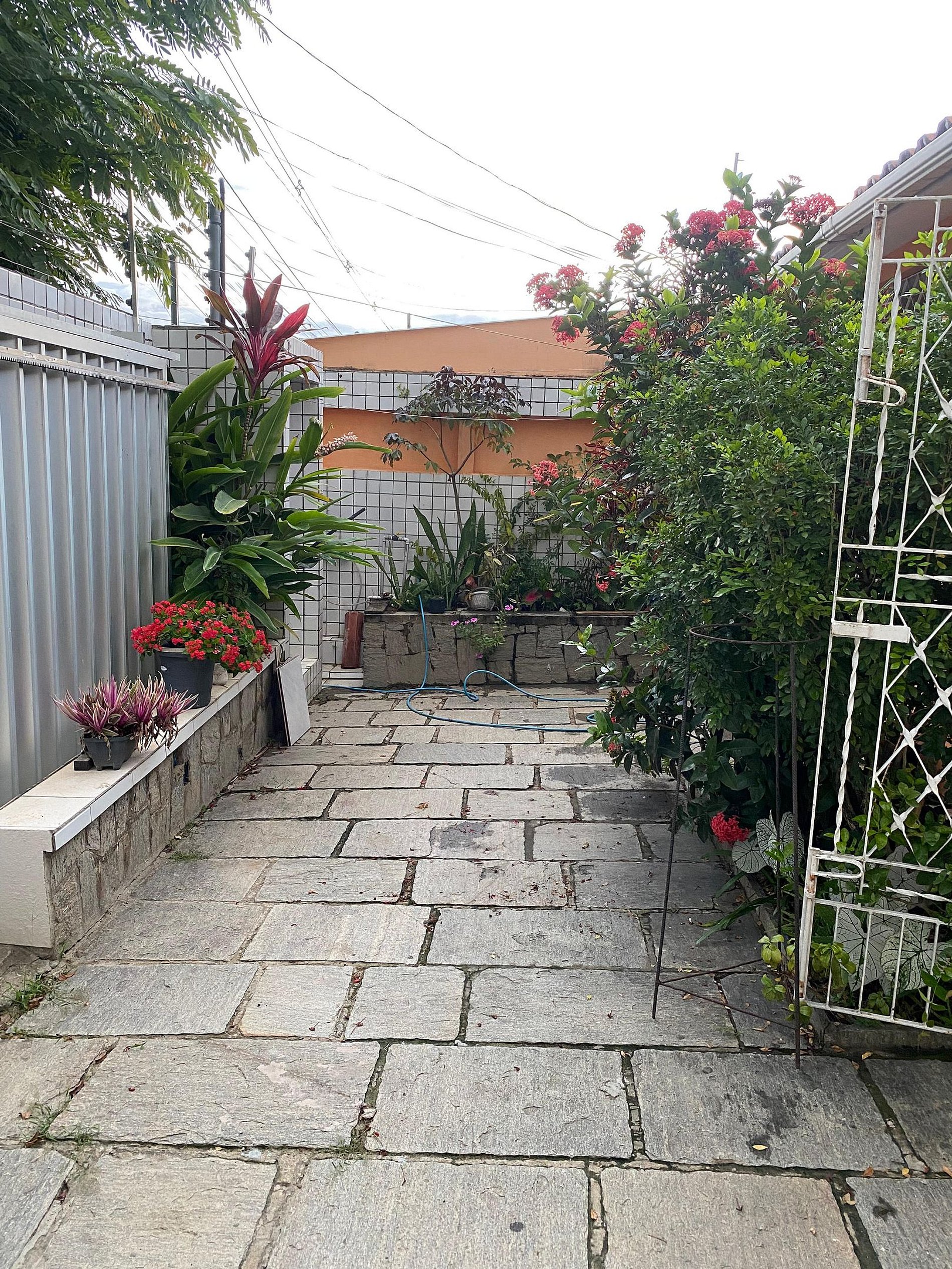 O charme da casa se estende para a área externa, com um lindo espaço de plantas que adiciona um toque de frescor e serenidade ao ambiente. E, para aqueles que precisam de um espaço para estacionar, a garagem comporta dois carros com facilidade.