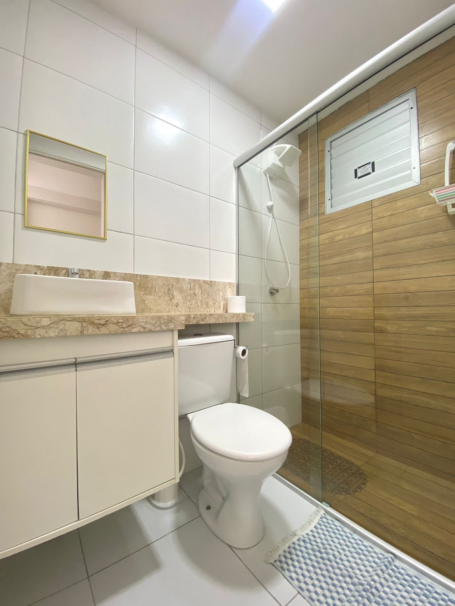 Banheiro completo, com tudo o que você precisa para o seu conforto e praticidade.