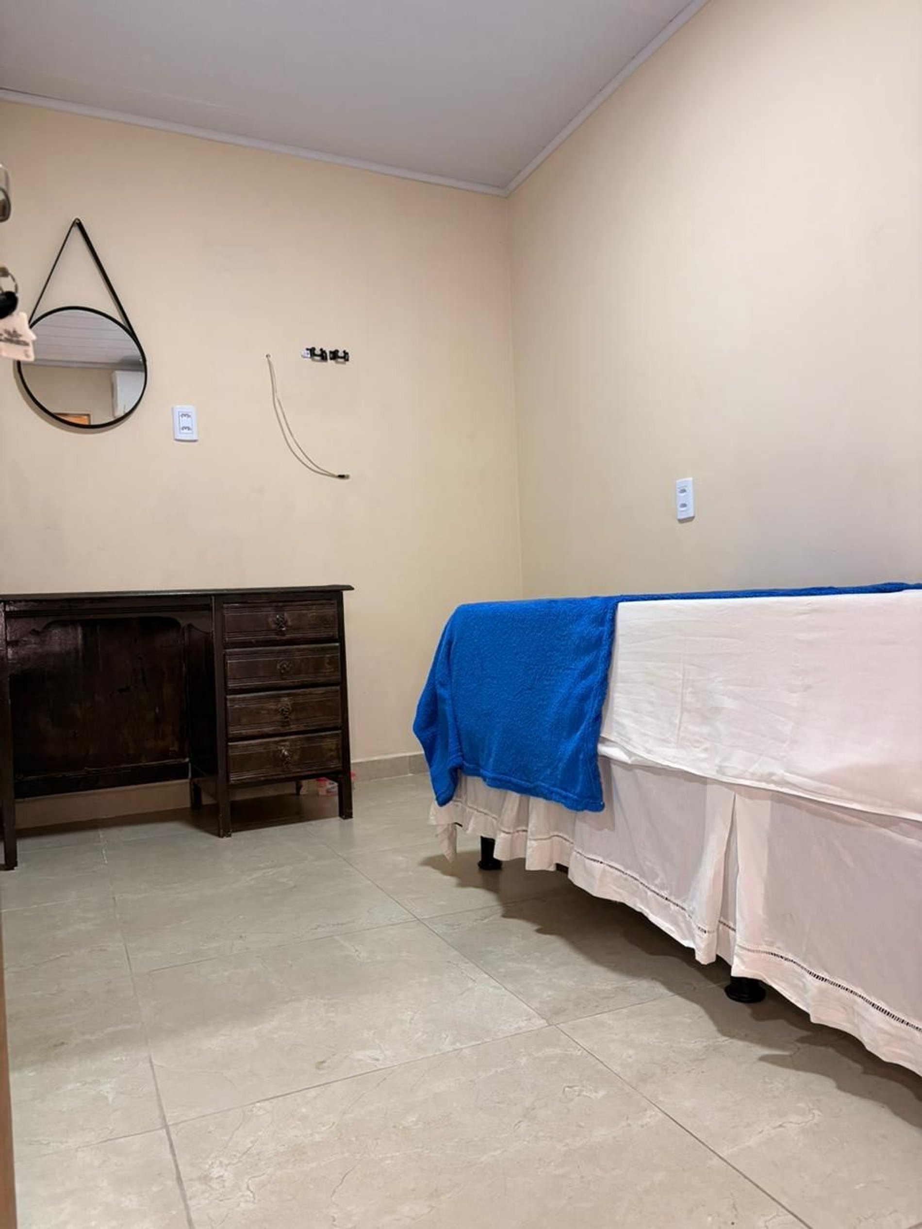 O ambiente oferece conforto, tranquilidade e harmonia, proporcionando uma experiência acolhedora e agradável. O quarto conta com uma cama de solteiro, mobiliário funcional e atmosfera aconchegante, ideal para momentos de descanso após um dia de passeio ou trabalho.